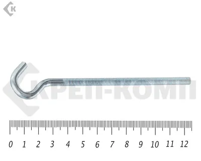 Крюк с метрической резьбой используется для монтажа различных конструкций к бетонному или кирпичному основанию при помощи анкера забивного или латунного анкера. Крюк имеет на конце метрическую резьбу и покрыт оцинкованным покрытием. Крючок используется с гайками и шайбами. Крючок может также использоваться для натяжки тросов при помощи талрепов и крепления к ним кабелей. Также его можно вкручивать в потолок при помощи анкера и крепить светильники.