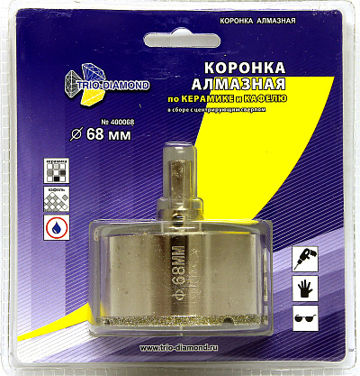 Коронка алмазная по керамике и кафелю с центрирующим сверлом 68мм (1 шт)2 080.12 ₽Цена (с НДС) / 2 080.12 ₽ за шт.